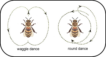 وهذا النوع من الرقص تستعمله النحلة الكشافة إذا كان مصدر الرحيق يبعد عن الخلية بأكثر من 50 متراً حيث تقوم
