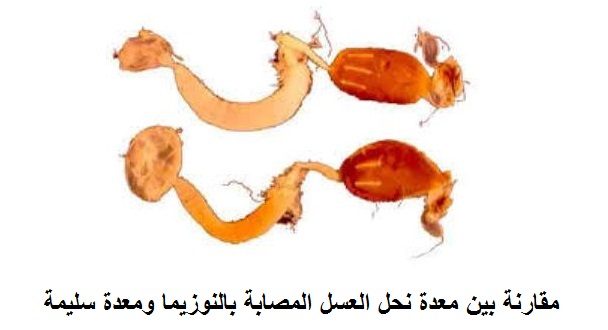 مقارنة بين معدة نحل العسل المصابة بالنوزيما ومعدة سليمة